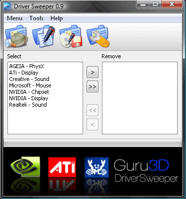 Driver Sweeper is only able to support drivers from NVIDIA (Display and Chipset), ATI (Display), Creative (Sound), Realtek (Sound), Ageia (PhysX) and Microsoft (Mouse). Although not much of driver is supported, but it can cover a lot of graphics card because a lot of people are either using NVIDIA or ATI video adapter.